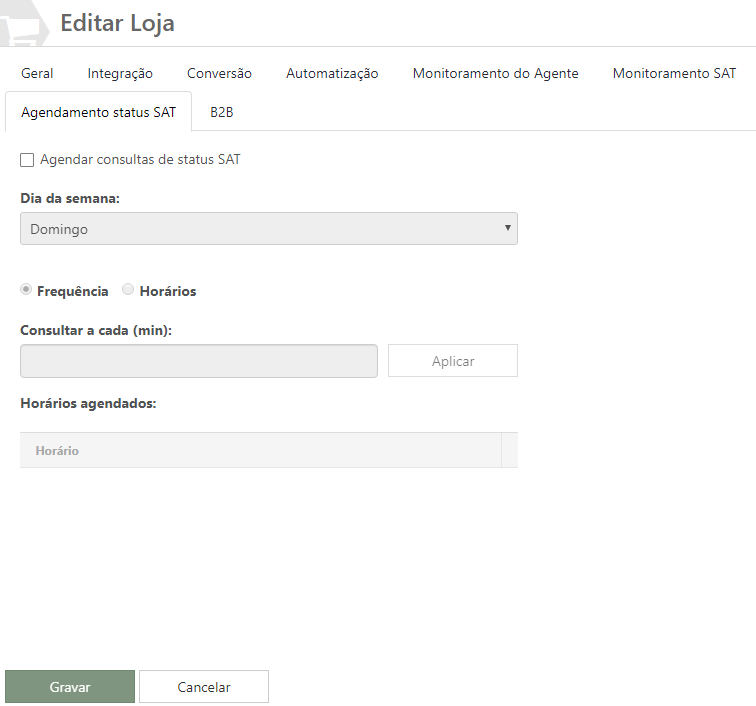 ✓ Agendar consultas de status SAT: Com esta opção marcada, as configurações de agendamento estarão disponíveis para cadastramento;