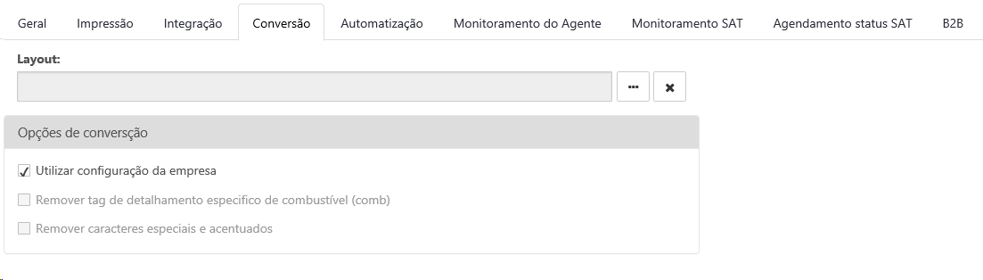 Ao marcar a opção Utilizar configuração da empresa, o restante das opções são desabilitadas pois será herdado as configurações da empresa.