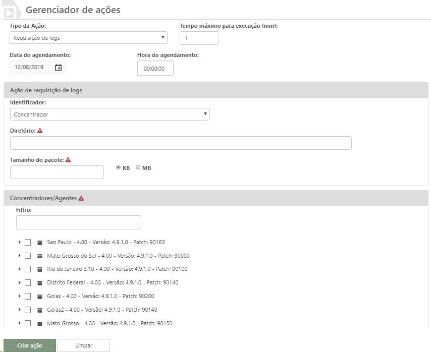 Para acessar as informações da imagem apresentada abaixo, deve ser selecionado o Tipo de Ação igual a Requisição de Logs, conforme a seguir.