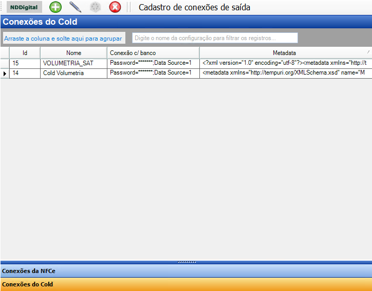Acesse o e-Connector Settings e na área de conexões, clique em Saída > Conexão do Cold. A seguinte tela é apresentada: