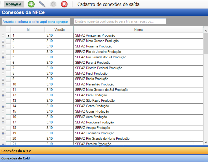 Condições para a aplicação remover o status de contingência de uma SEFAZ.