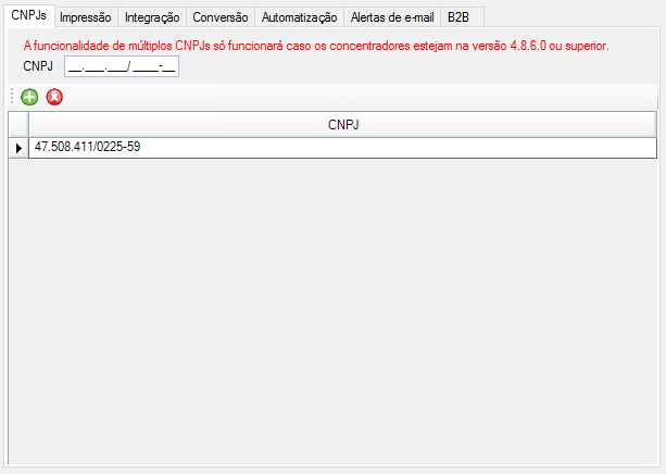 para adicionar o mesmo, lembrando que pode ser informado o CNPJ completo (14 caracteres) ou apenas a raiz (8 caracteres).