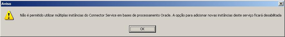 Não é permitido utilizar múltiplas instâncias do Connector Service em bases de processamento Oracle. A opção para adicionar novas instâncias deste serviço ficará desabilitada.