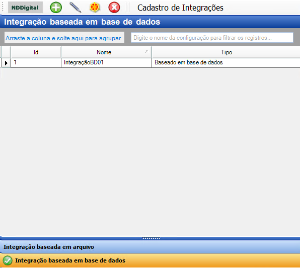 Acesse o e-Connector Settings e na área de configurações, clique em Integrações > Integração baseada em base de dados. A seguinte tela é apresentada: