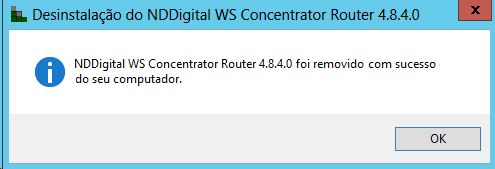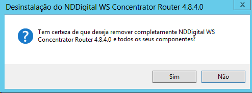 Desinstalação do Módulo Web Services Concentrator Router NFC-e: para desinstalar, acesse o menu Iniciar>Programas>NDDigital e-Forms NFC-e>WS Concentrator Router>Uninstall. Para prosseguir, siga os passos abaixo:
