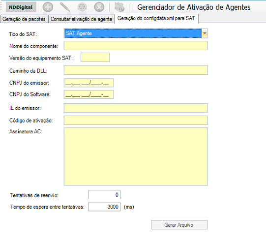 ✓ Tipo do SAT: Selecione o tipo, podendo ser SAT Agente ou SAT Server;