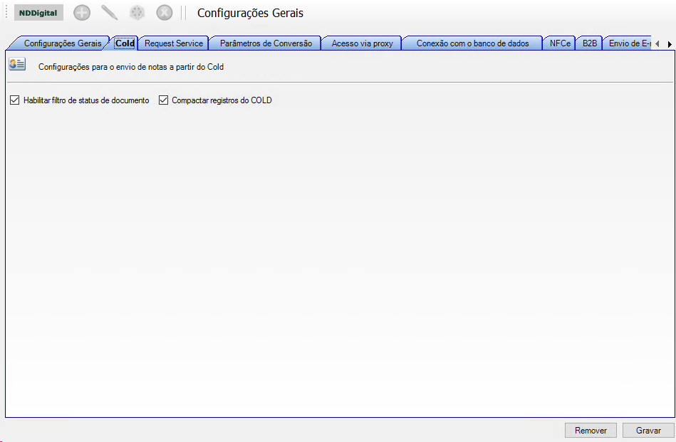 Acesse o e-Connector Settings e na área de configurações, clique em Configurações Gerais > Cold. A seguinte tela é apresentada: