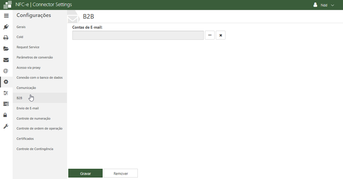 Contas de e-mail: Deverá ser selecionada uma conta de e-mail para o envio B2B.