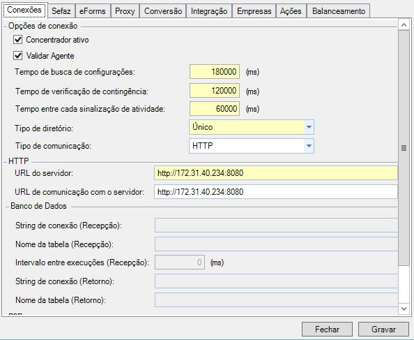 Através desta aba é possível inserir informações de como o concentrador vai receber os arquivos do PDV ou Agent.