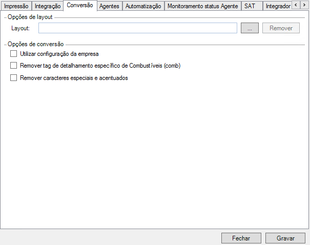 ✓ Remoção da Tag de detalhamento específico de Combustível (comb): Fará a remoção automática da tag comb caso esta opção seja marcada;