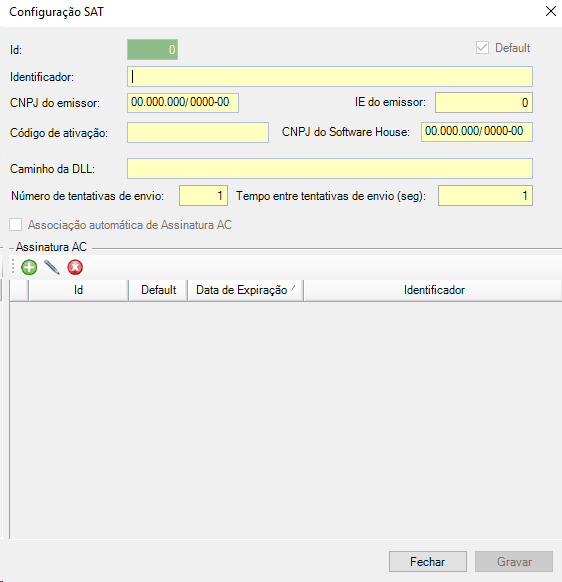 ✓ Default: Habilitando esta opção, a assinatura AC será a Default para equipamentos novos. Equipamentos que já estão cadastrados no sistema, utilizarão a Assinatura AC antiga até que seja solicitada a Reassociação de forma manual;