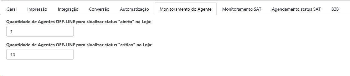 ✓ Quantidade de Agentes OFF-LINE para sinalizar status de "alerta" na Loja: Neste é informado a quantidade de Agentes que estarão off-line para sinalizar no e-monitor o status de alerta;