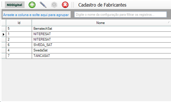 Acesse o e-Connector Settings e na área de configurações, clique em Fabricantes SAT. A seguinte tela é apresentada: