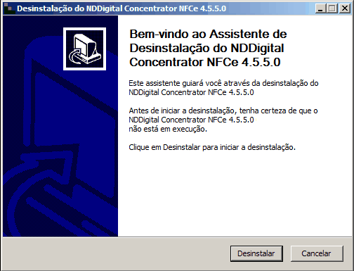 Tela inicial: Tela inicial da desinstalação do Concentrador. Para prosseguir, clique em Desinstalar.