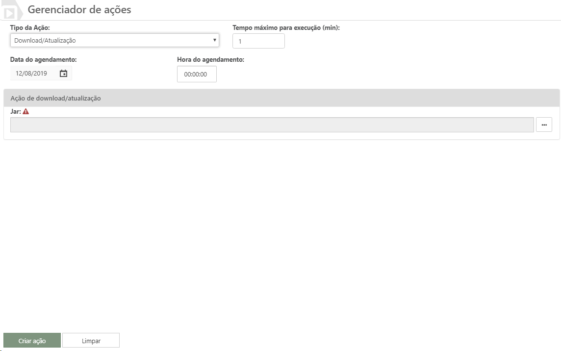 - A Ação de Download/Atualização habilita as ações onde o cliente quer que a atualização ocorra logo após a finalização de ação de download automaticamente;