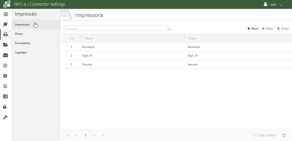 ✓ Chave: Deverá colocar a chave da impressora que será utilizada.