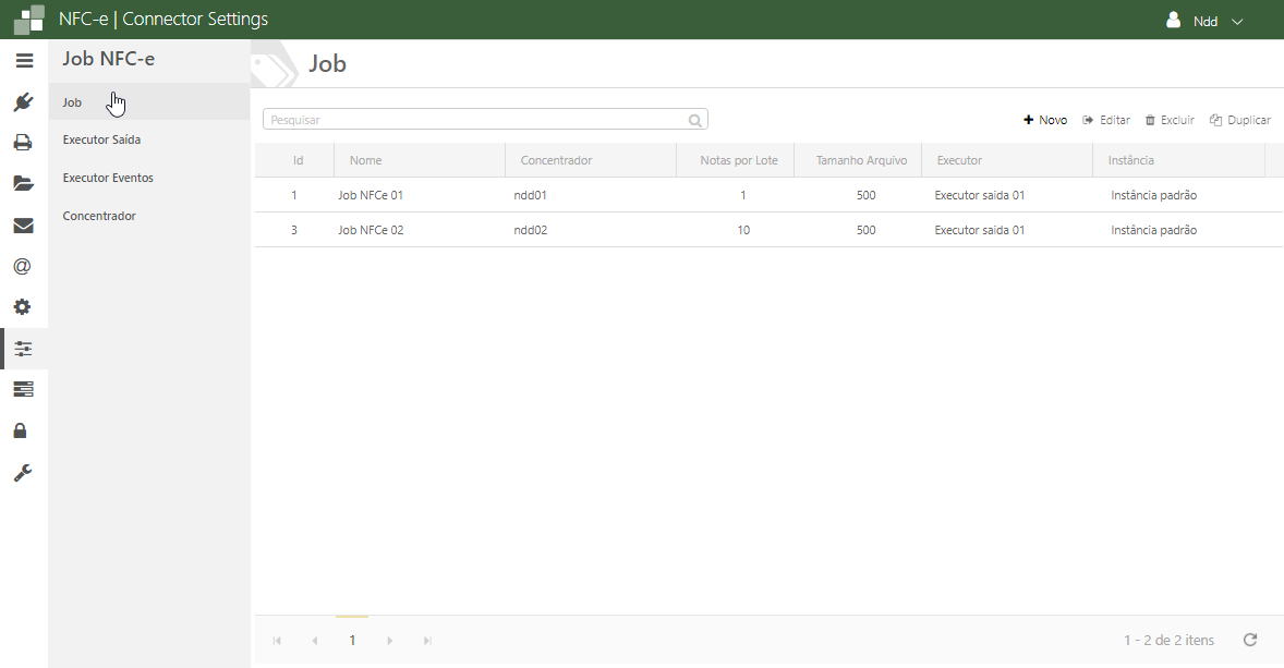 Acesse o e-Connector Settings e na área de Job NFC-e, clique em Job. A seguinte tela é apresentada: