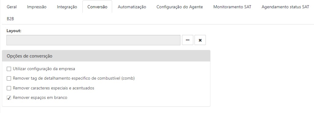 ✓ Remoção da tag de detalhamento específico de combustível (comb): Fará a remoção automática da tag comb caso esta opção seja marcada;