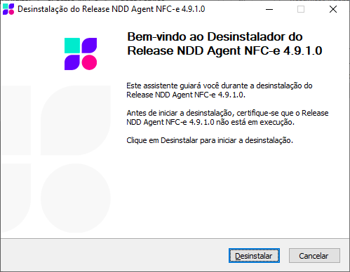 •Bem Vindo ao Assistente de Desinstalação do NDDigital Agent: Tela inicial da Desinstalação do Agent. Para prosseguir, clique em Desinstalar.