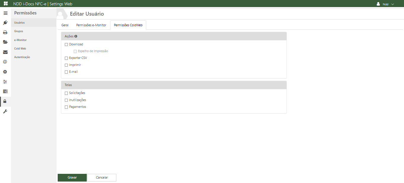 Permissões e-ColdWeb |