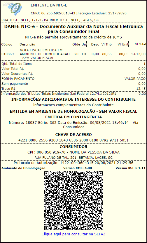 Não será gerado a impressão com Qrcode, e ou dados adicionais, será impresso restritivamente apenas o conteúdo presente na seção Visualização Rápida.