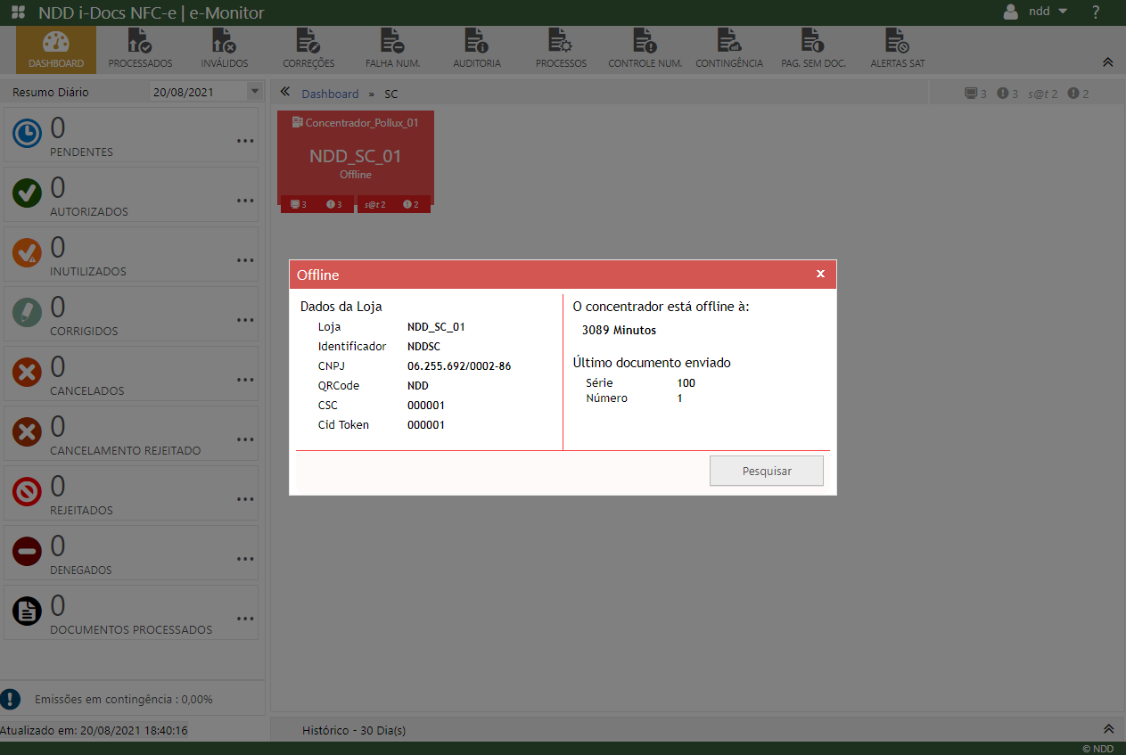 Os grupos criados nesta tela serão apresentados no e-monitor, conforme imagem, onde ao clicar em um destes será apresentado apenas o resumo dos documentos processados das lojas vinculadas ao grupo selecionado.