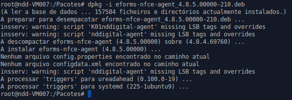Exemplo do comando: dpkg -i eforms-nfce-agent-4.8.5.00000.deb