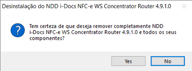 Tela inicial da desinstalação do Web Services. Para prosseguir, clique em Sim.