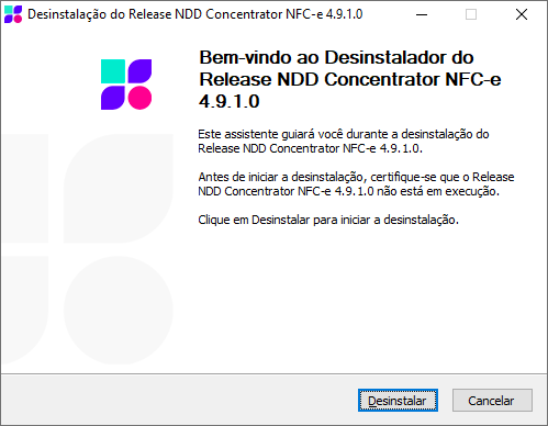 Tela inicial: Tela inicial da desinstalação do Concentrador. Para prosseguir, clique em Desinstalar.