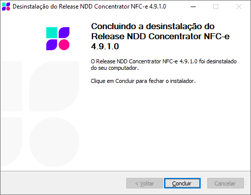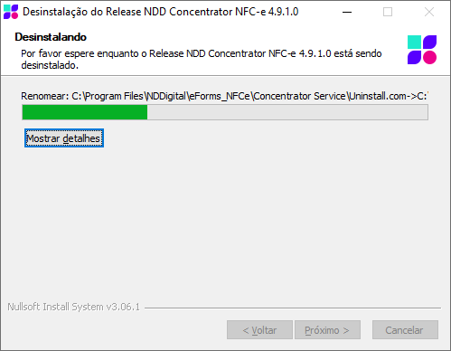 Progresso da Desinstalação: Será mostrado o progresso da desinstalação do Concentrador.