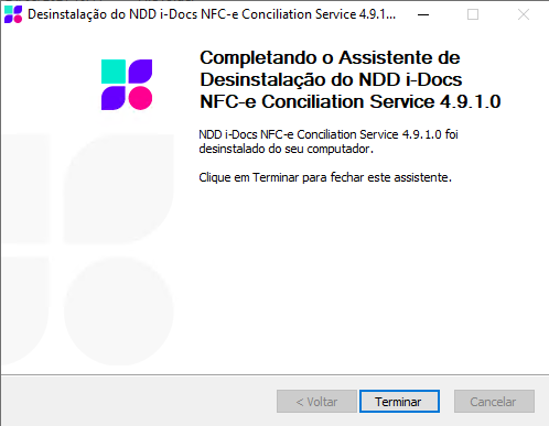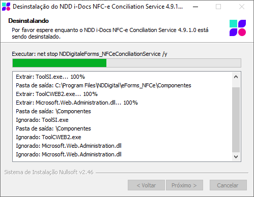 Progresso da Desinstalação: Será mostrado o progresso da desinstalação do NDDigital Conciliation Service.