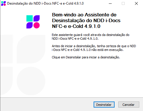 Desinstalação do NDDigital e-Cold: para desinstalar o NDDigital e-Cold, acesse o menu Iniciar > Programas > NDDigital e-Forms NFC-e > e-Cold > Uninstall. Para prosseguir, siga os passos abaixo: