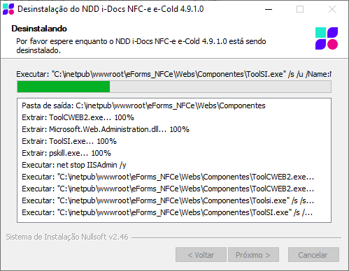 Progresso da Desinstalação: Será mostrado o progresso da desinstalação do NDDigital e-Cold.