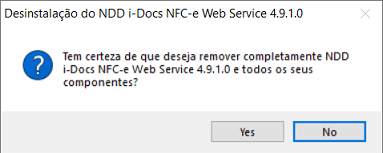 Tela inicial da desinstalação do Web Services. Para prosseguir, clique em Sim.