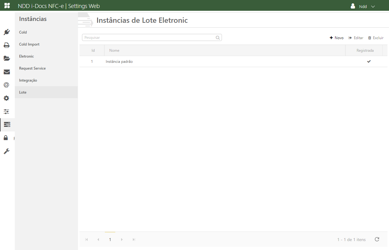 Acesse o e-Connector Settings e na área de Instâncias, clique em Lote. A seguinte tela é apresentada: