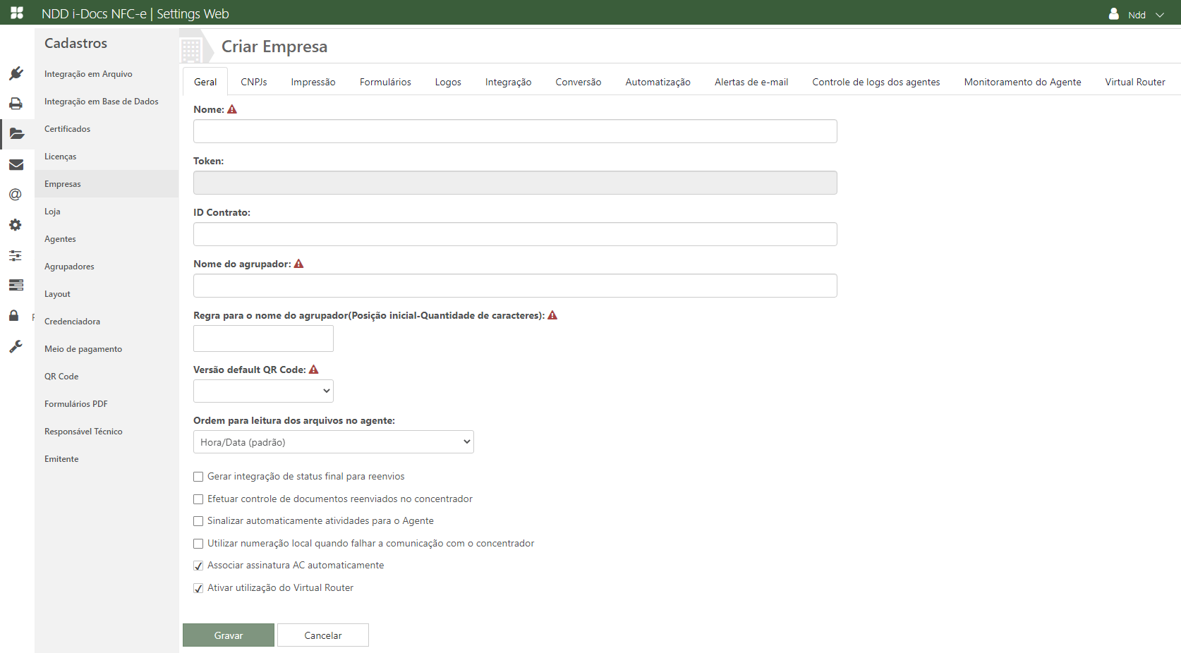 ✓Nome: Informe o nome da empresa que deseja cadastrar;