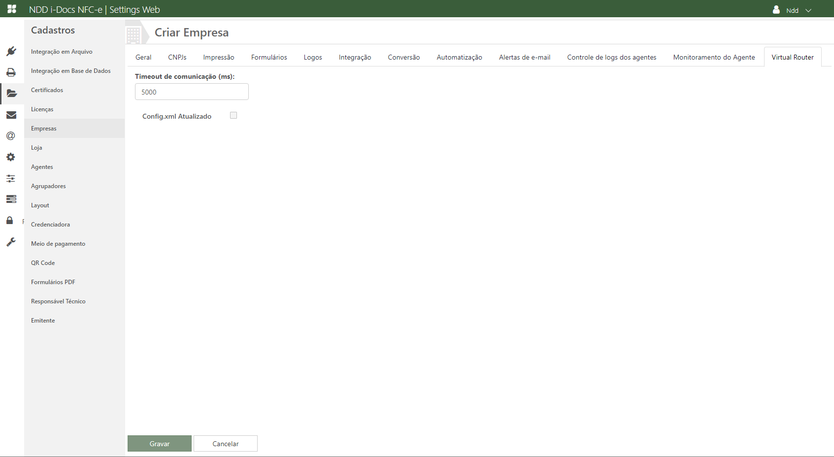 ✓Config.xml Atualizado: Caso habilitado o config.xml utilizado pelo Virtual Router será atualizado automaticamente.