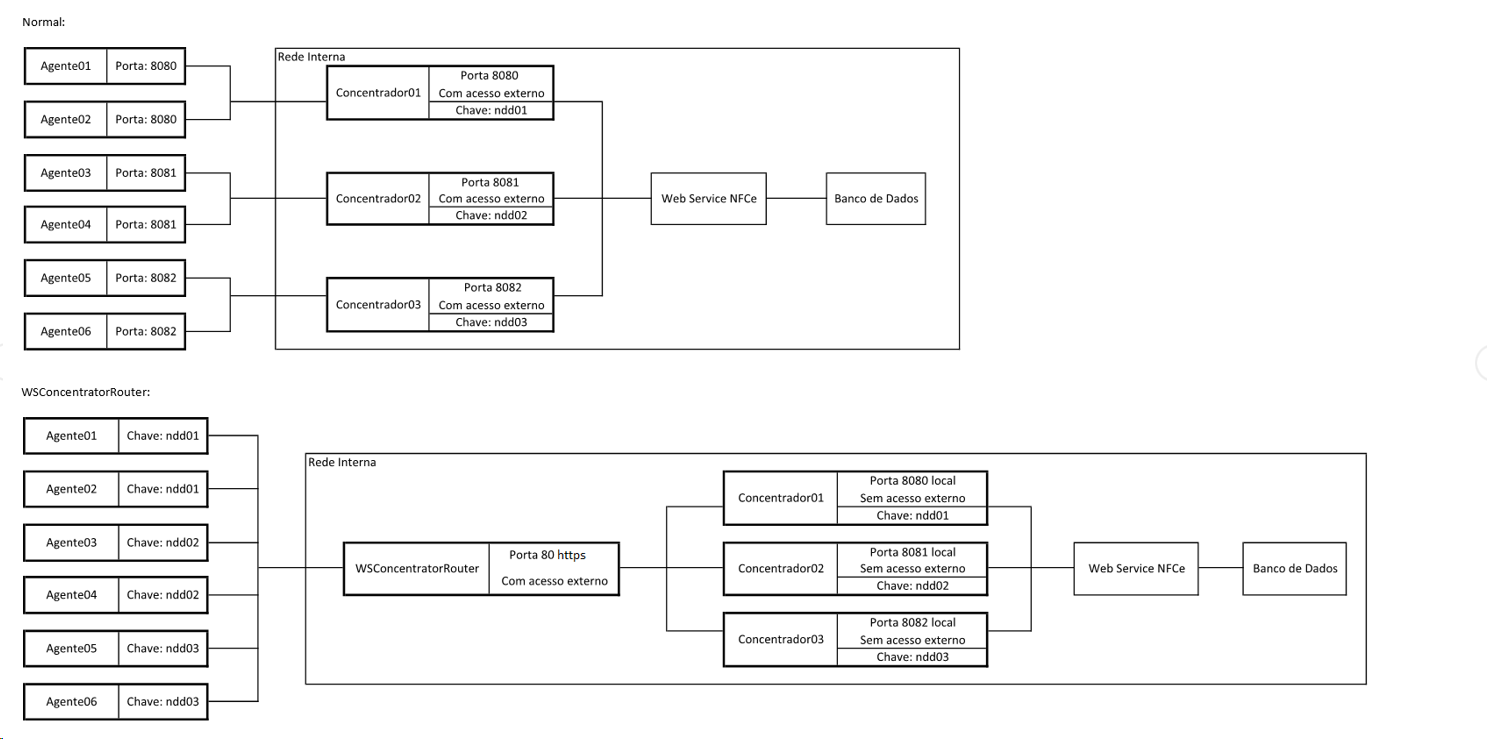 ▪Liberação de apenas uma porta externa: Ao utilizar vários Concentradores é necessário liberar várias portas para os Agentes, já o WS Concentrator Router utilizará apenas uma porta que faz a rota dos agentes para seus devidos Concentradores.
