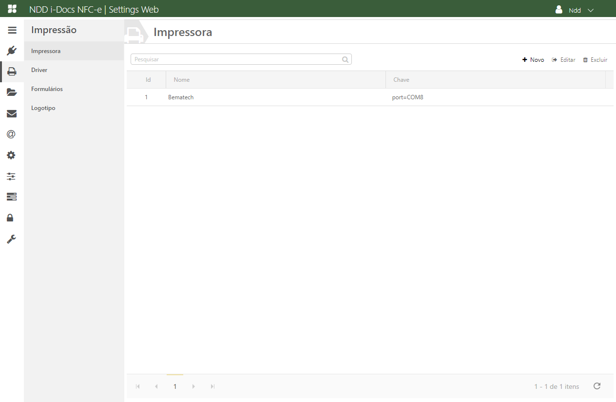 Acesse o e-Connector Settings e na área de impressoras, clique em Impressora. A seguinte tela é apresentada: