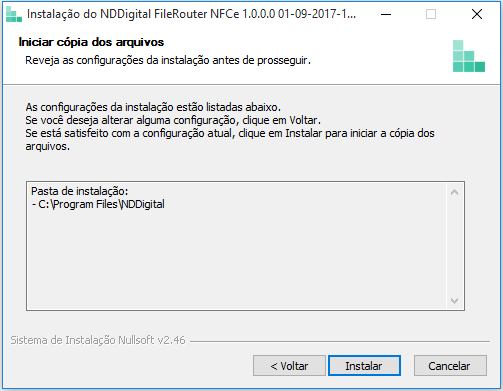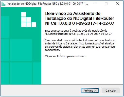 Execute o arquivo de instalação do FileRouter NFCe disponibilizado pela NDDigital.