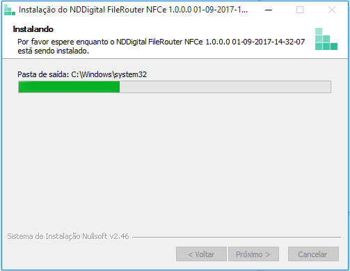 Instalação: Aguarde enquanto o FileRouter NFCe está sendo instalado.