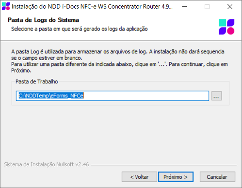 Na tela abaixo, se desejar, altere o diretório de logs e então, clique em Próximo.