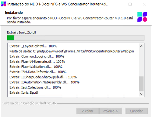 Progresso da Instalação: Aguarde enquanto o instalador efetua a cópia dos arquivos necessários para o funcionamento do sistema.