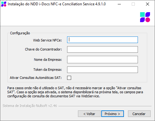 Este passo só será habilitado quando a opção Ativar Consultas Automáticas SAT estiver selecionada, caso contrário a instalação prosseguirá para o passo 4.