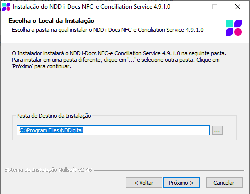 A tela acima surgirá e nesse momento o usuário deverá definir a pasta de Destino da Instalação.