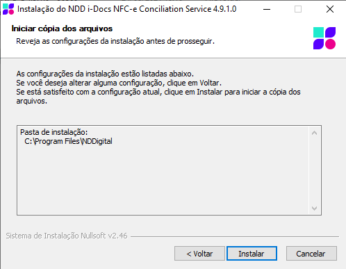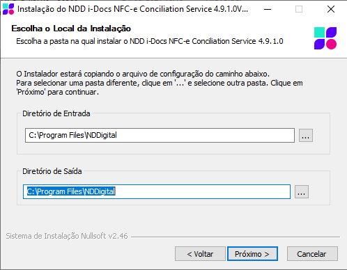 Execute o arquivo de instalação do Conciliation Service disponibilizado pela NDDigital. Você também pode fazer o download dos instaladores acessando o site da NDDigital, efetuando seu cadastro de usuário. Para isso, acesse www.ndd.com.br.