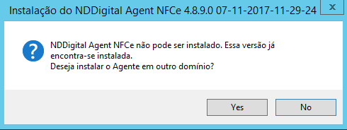 O instalador do Agent faz a verificação se a versão que está instalada é a mesma versão que está sendo executada pelo instalador. A tela abaixo será exibida. Caso deseje instalar em outro Domínio, clique em Sim.