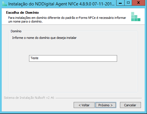 •Escolha o Domínio: Informe o nome do Domínio desejado para o Agent e clique em Próximo: