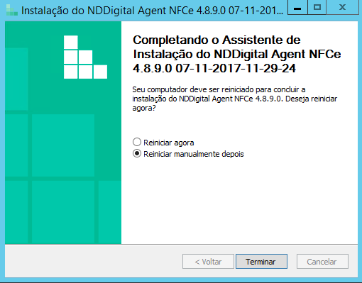 •Instalação Concluída: A tela abaixo mostra que a instalação foi concluída, selecione a opção de reinicialização desejada e após clique em Terminar para finalizar a instalação.