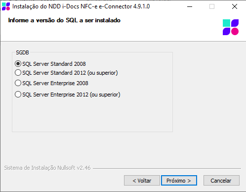 Selecione o Sistema Gerenciador de Banco de dados a ser utilizado pelo Connector NFC-e. Os SGBD’s compatíveis com o módulo e-Connector NFC-e são: